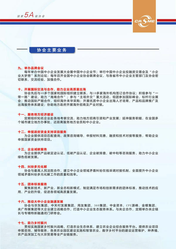 中国中小企业协会为各级会员提供的服务内容